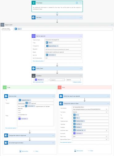 Create flows for common business scenarios using a rich template gallery, and then easily customize them to meet your needs through an intuitive graphical editor. You can also start from scratch using the same editing experience and build complex flows that include parallel branching, conditional logic, and loops.
